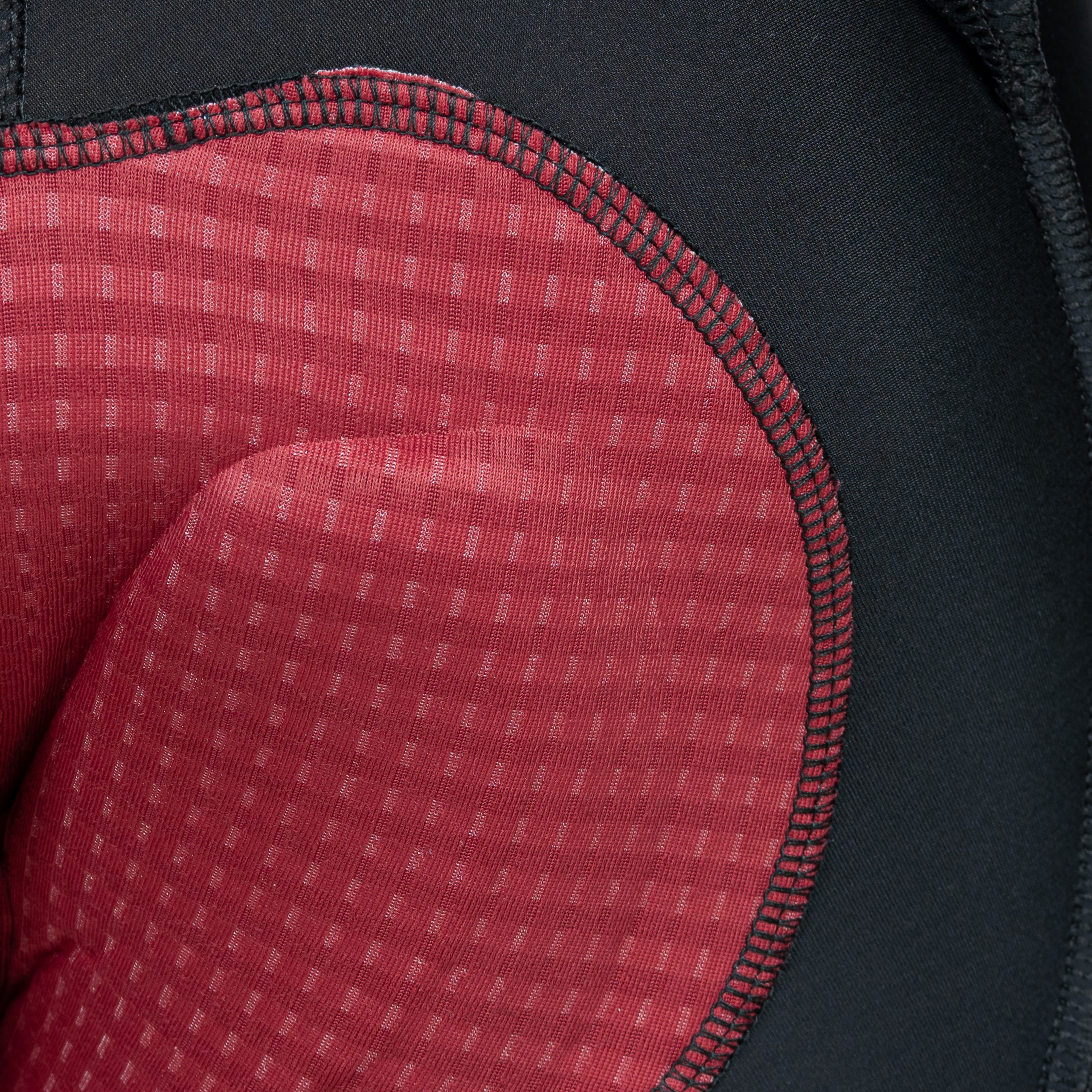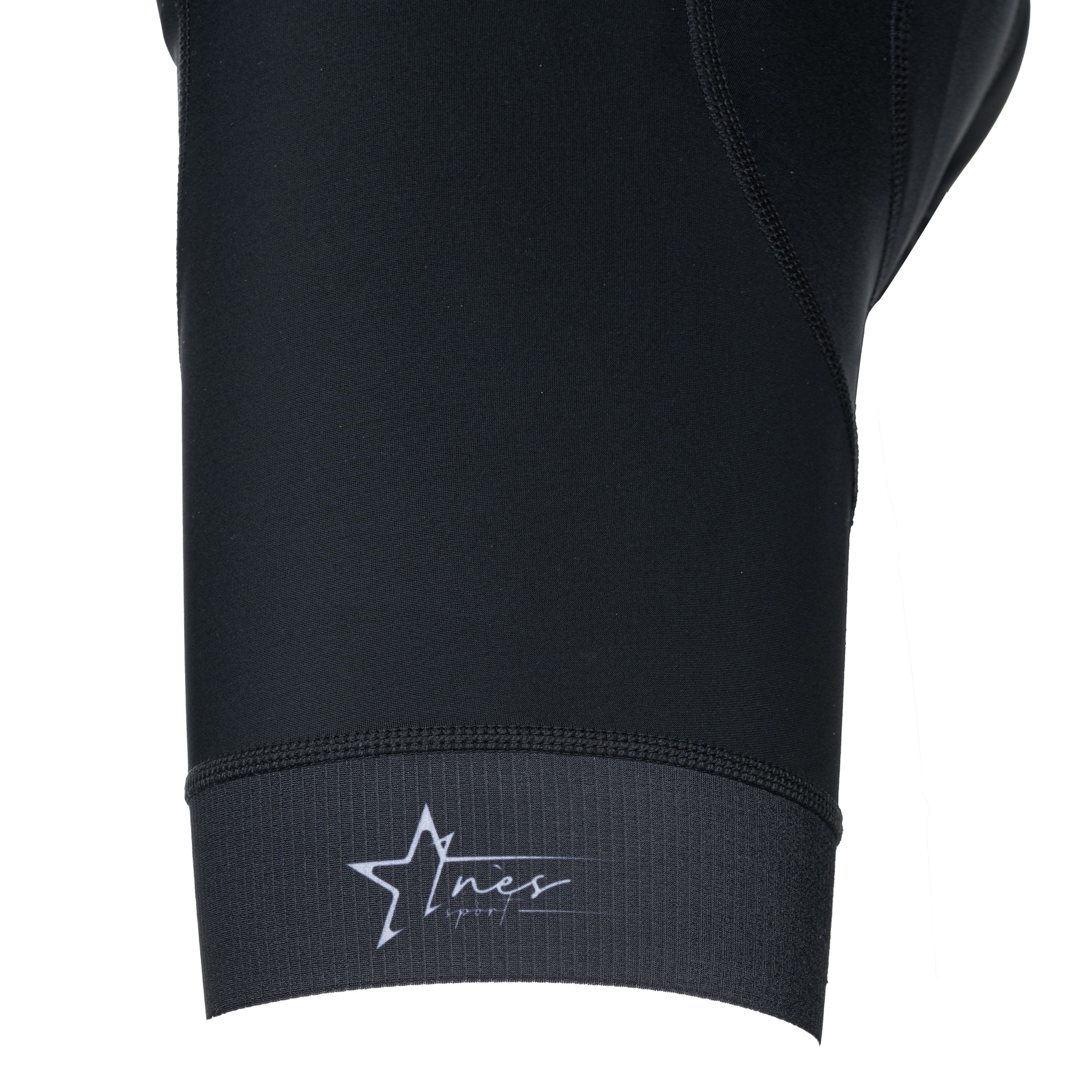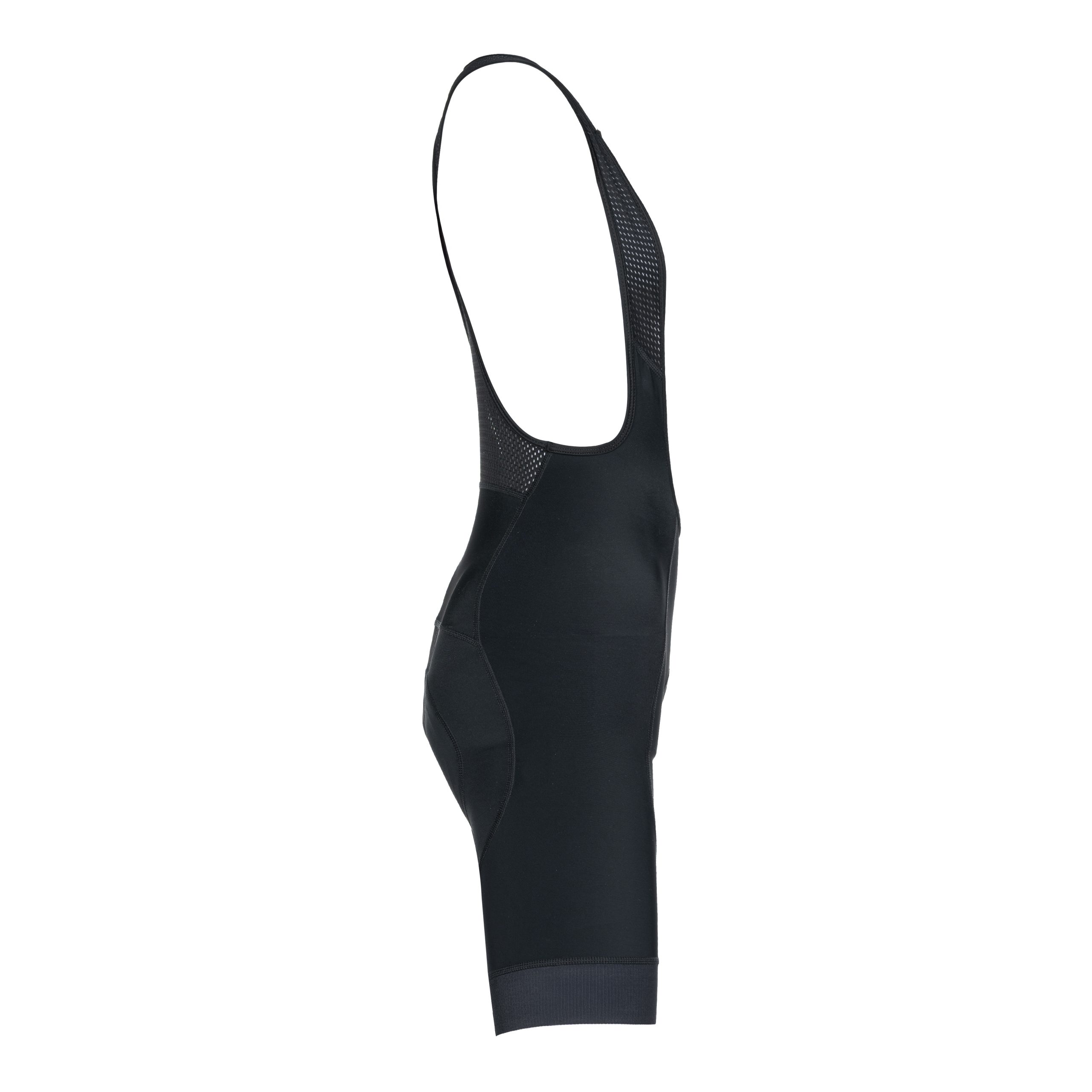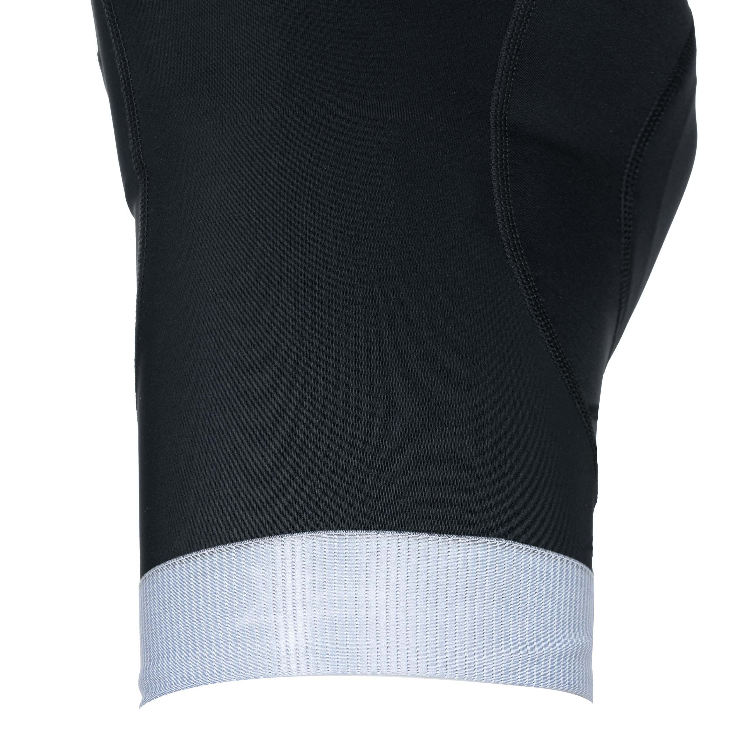 Composed of 2 medium-compression technical fabrics, invisible seams, dual-density foam chamois, sublimable side panels with finishing bands on the thighs (half-band to avoid excessive compression), and mesh suspenders.